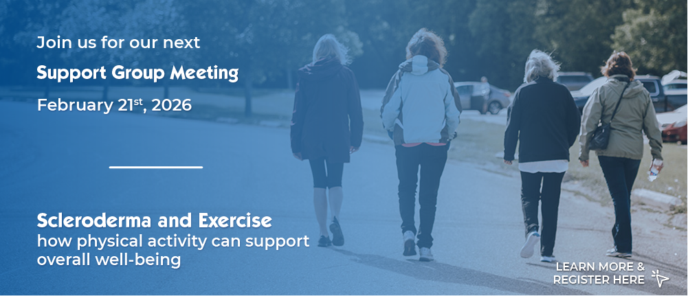 At our next meeting on February 21, 2026 on Zoom, Behavior Change Researcher, Dr. Amanda Wurz, will conduct an interactive session “Exercise and Scleroderma,” highlighting how even small changes can lead to meaningful improvements in well being.